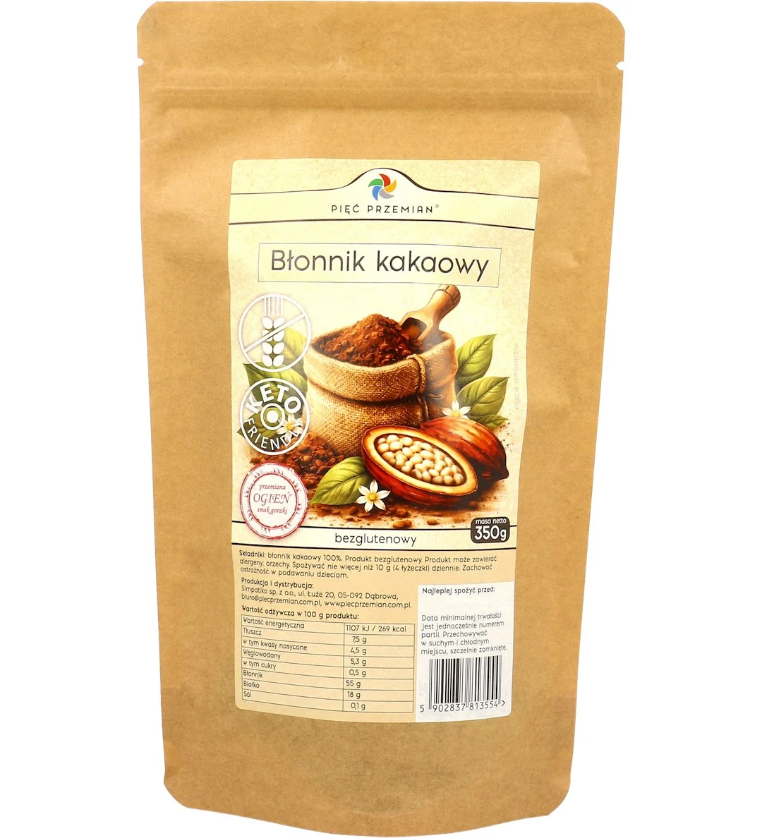 Błonnik Kakaowy bezglutenowy 350g – Pięć Przemian: Czekoladowy aromat w zdrowej odsłonie